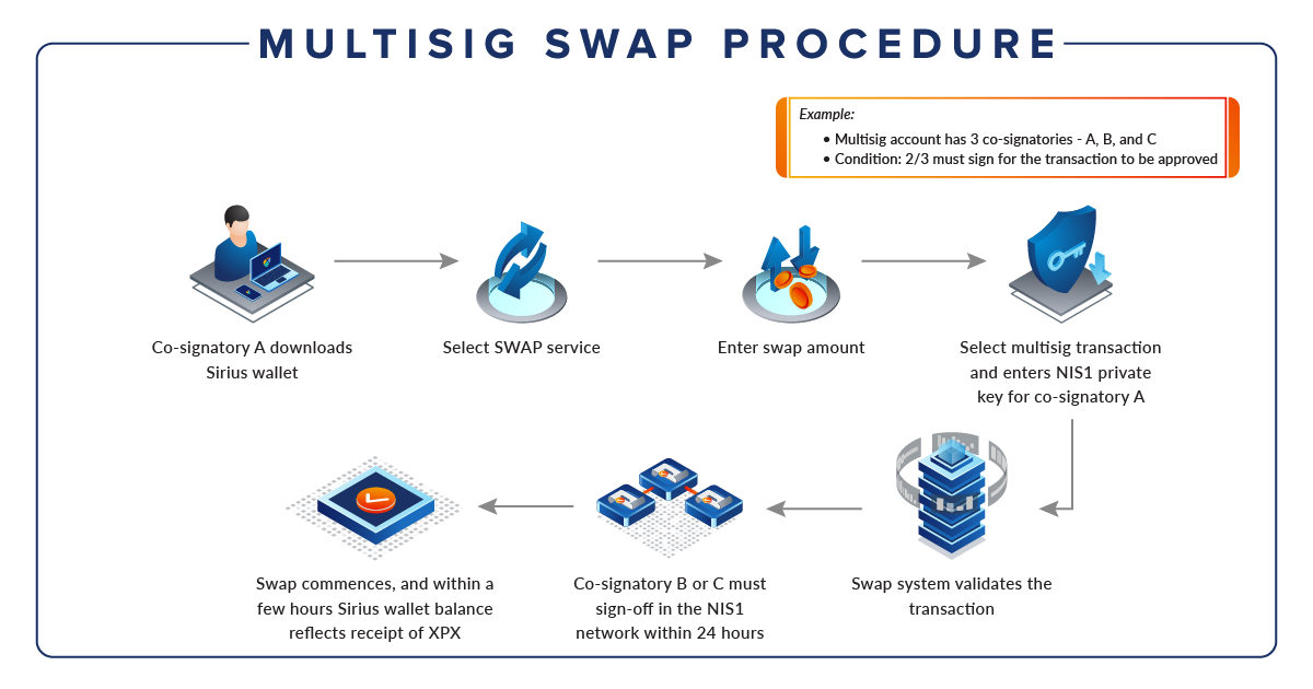The simple swap procedure is used for single signatory accounts, i.e. non-multisig accounts which will apply to the majority of XPX holders.