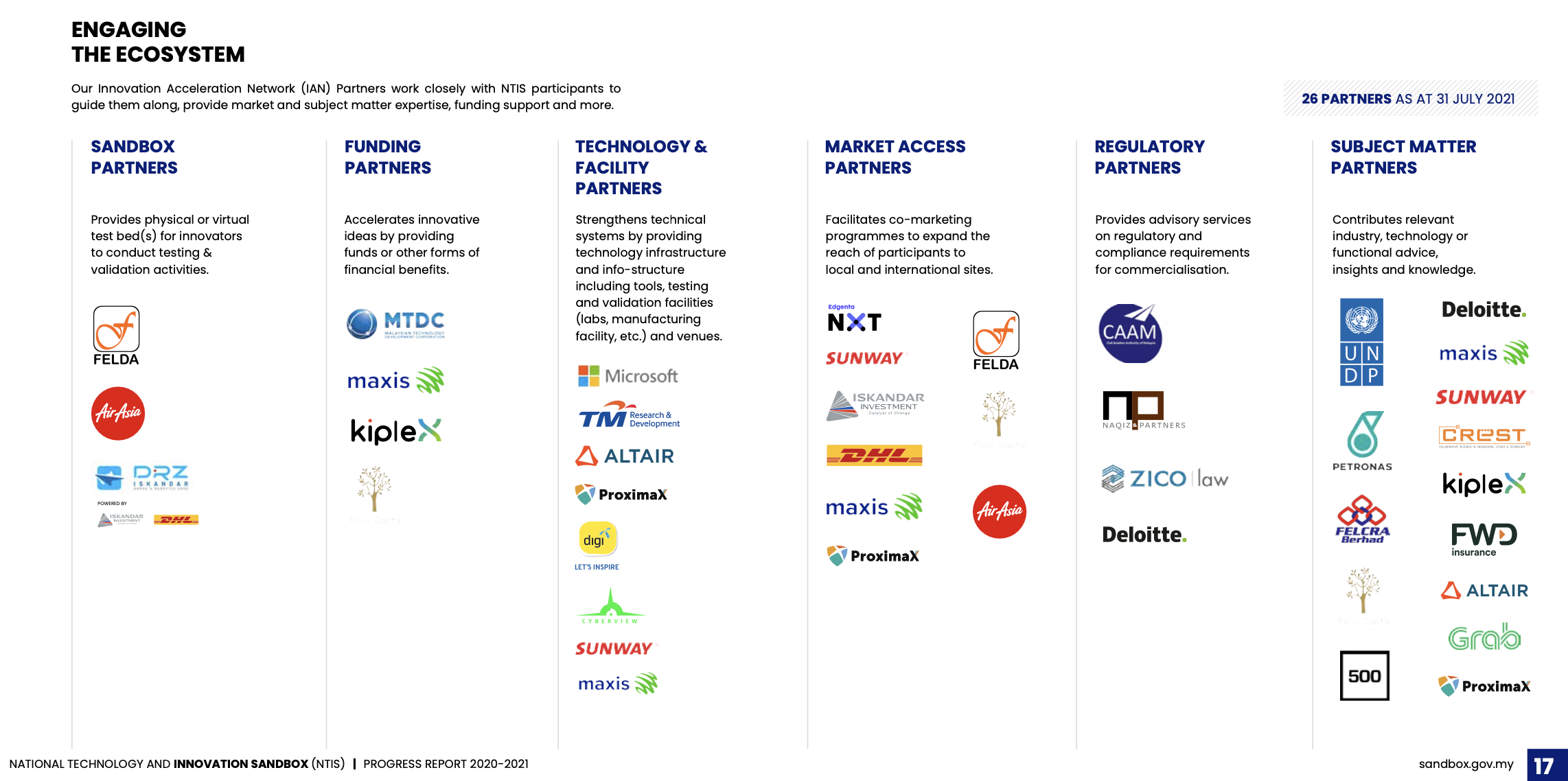 The National Technology and Innovation Sandbox, launched by Malaysia’s Prime Minister in 2020, is a program that enables researchers, innovators, and entrepreneurs to test their products and services in a live environment and qualify for grants to bring those products and services to market.