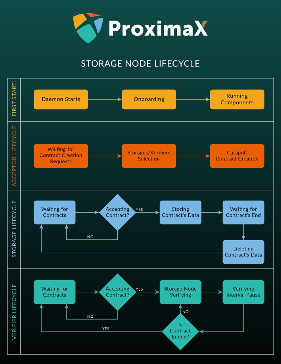 In addition to these, we are introducing new contracts specifically for the storage layer. These contracts will be built using ProximaX Sirius plugins to create a digital contractual obligation between the storage host nodes, selected verifier, and the client.