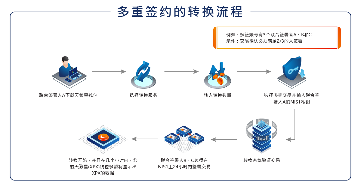 多重签名账户中的任一联合签署方均可发起转换操作。