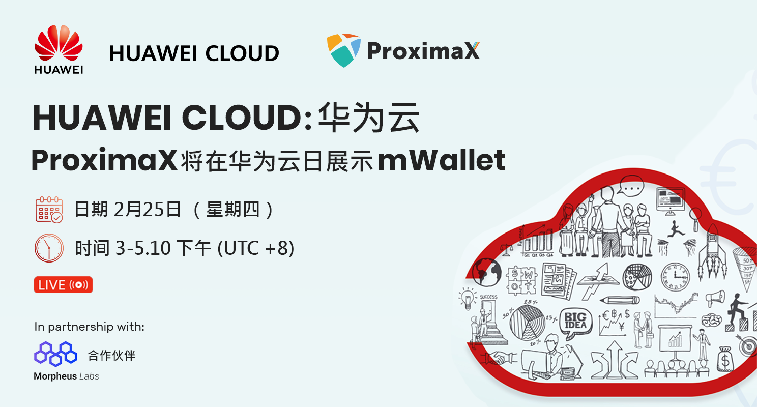 新加坡:ProximaX欣然宣布,已受基础设施合作伙伴Morpheus Labs邀请,在2021年2月25日举行的首届华为云网络研讨会上展示其基于区块链的移动钱包解决方案。